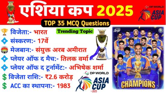 Asia Cup 2025 GK questions | Asia Cup 2025 GK In Hindi