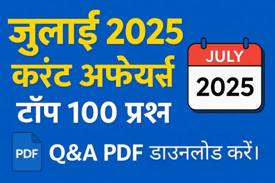 यहाँ जुलाई 2025 के टॉप 100 करेंट अफेयर्स प्रश्न हिंदी में दिए गए हैं, जो RRB NTPC, SSC, UPSC जैसे प्रतियोगी परीक्षाओं के लिए बेहद महत्वपूर्ण हैं।